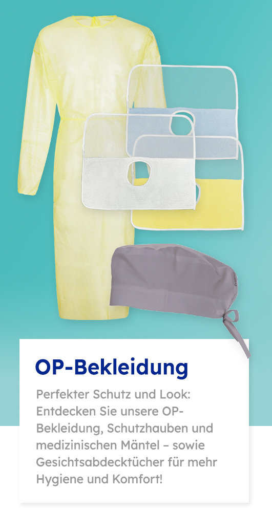 Mit der hochwertigen OP-Bekleidung von Beycodent statten Sie Ihre Zahnarztpraxis professionell aus. Das Sortiment umfasst Einweg-OP-Kittel, OP-Hauben und OP-Schuhe, die speziell für den Einsatz in der Zahnarztpraxis entwickelt wurden. Die Produkte zeichnen sich durch hohen Tragekomfort, atmungsaktive Materialien und eine professionelle Passform aus, um den Anforderungen im OP-Bereich gerecht zu werden.
