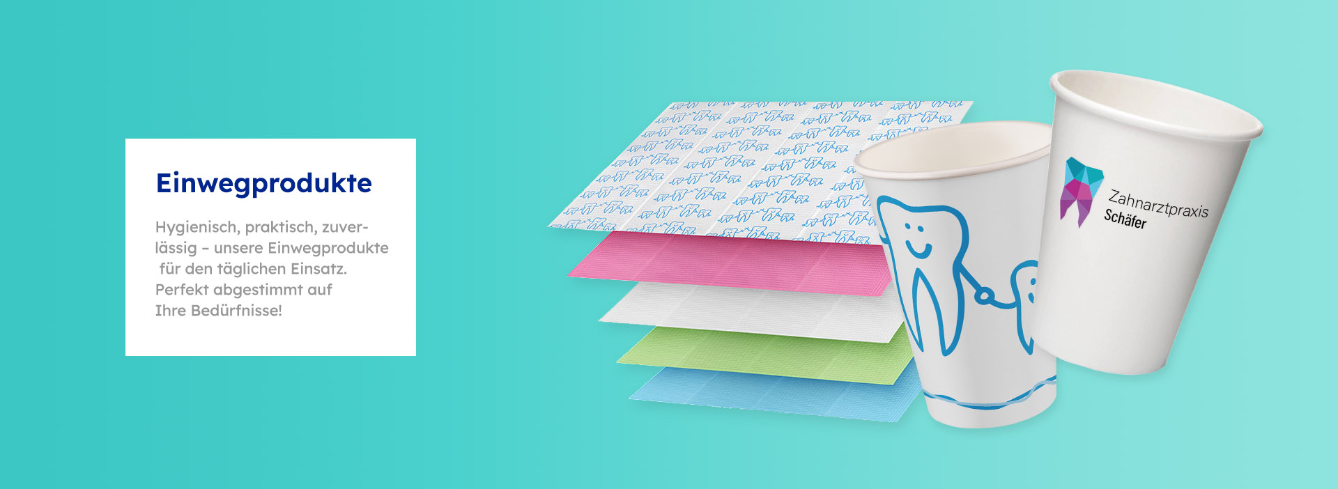 Mit den praktischen Einwegprodukten von Beycodent steigern Sie in Ihrer Praxis nicht nur Effizienz und Hygiene, sondern auch Patientenkomfort. Ob recyclebare Hartpapier-Mundspülbecher im ansprechenden Zahndesign, Einweg-Mundschutzmasken Typ II, Patientenservietten, Dispofix-Sternloch-Einsätze oder selbstklebende Serviettenhalter – jede Lösung ist speziell auf den Bedarf in Zahnarztpraxen abgestimmt. Die Becher aus Hartpapier mit PE- oder PLA-Innenbeschichtung überzeugen durch Formstabilität, Umweltfreundlichkeit und ein freundliches Patientenambiente.