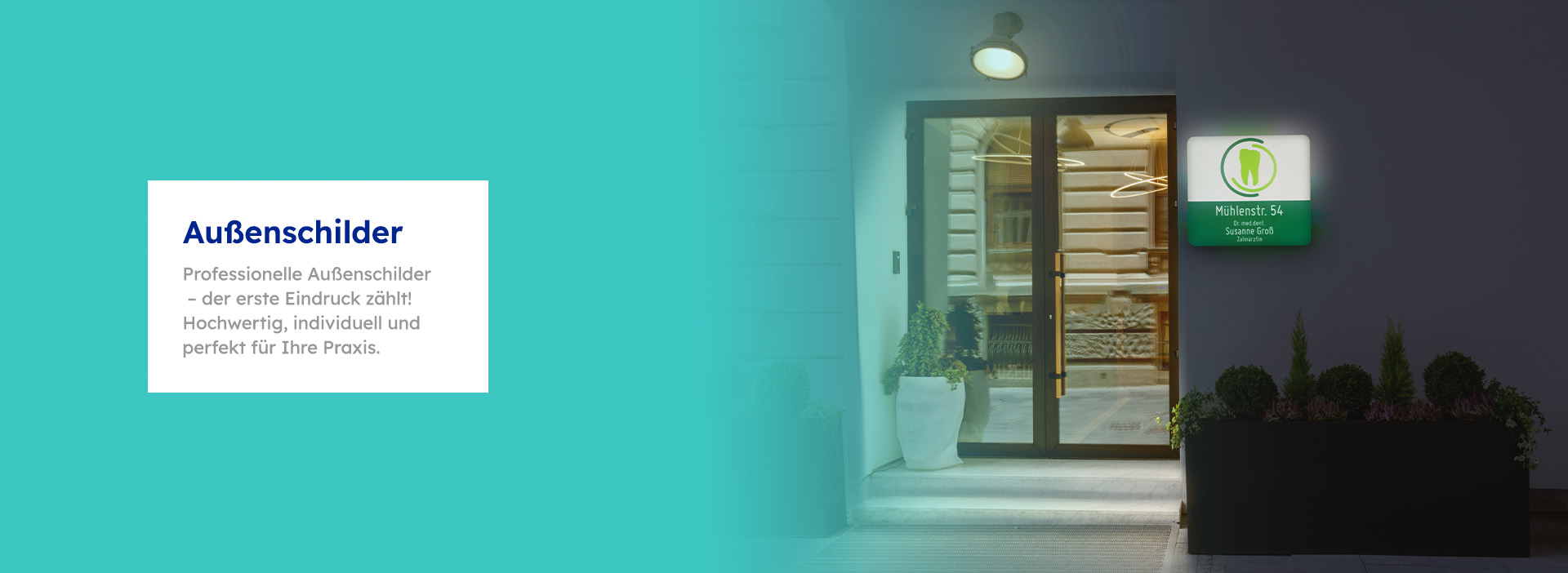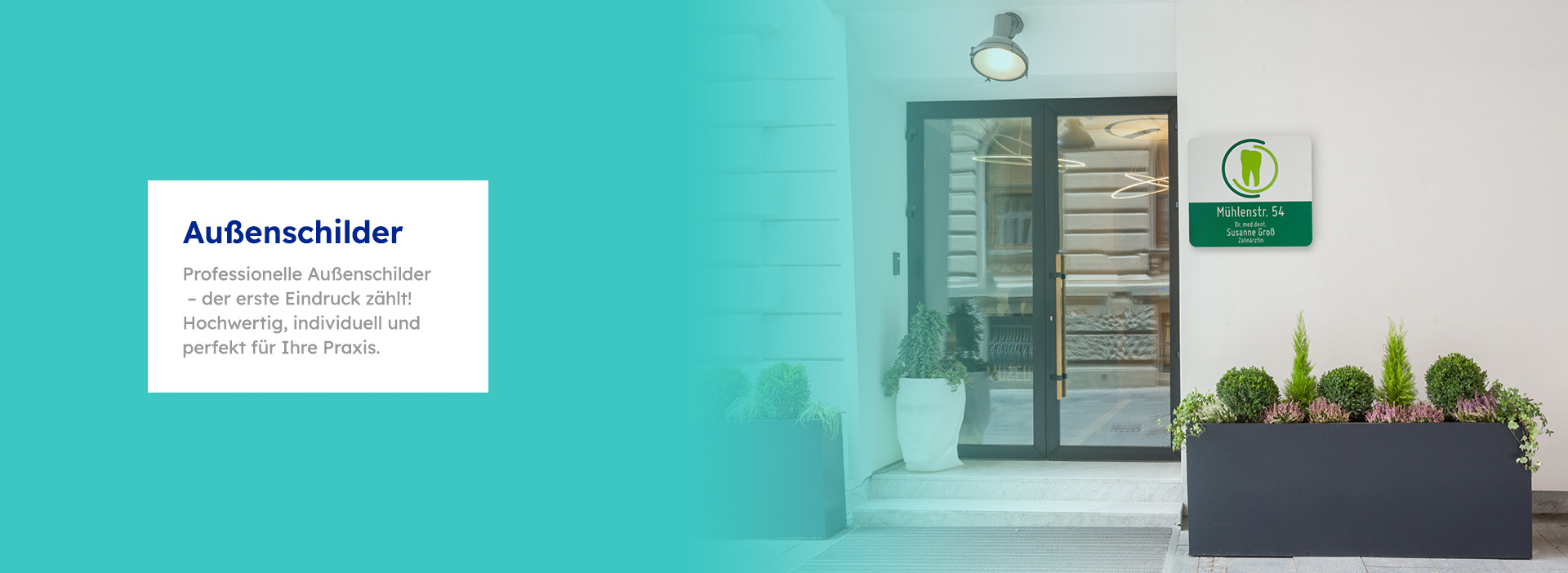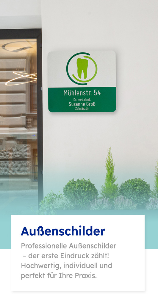 Ob Innen- oder geschützter Außenbereich, das Praxisschild überzeug.