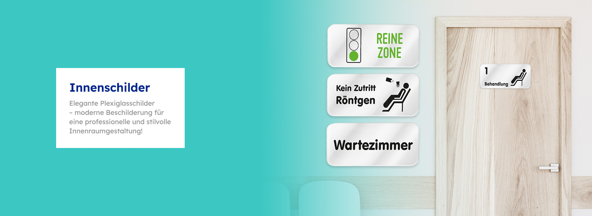 Plexiglasschild mit individuellem Wunschtext – maßgeschneiderte Innenschilder für Ihre Praxis